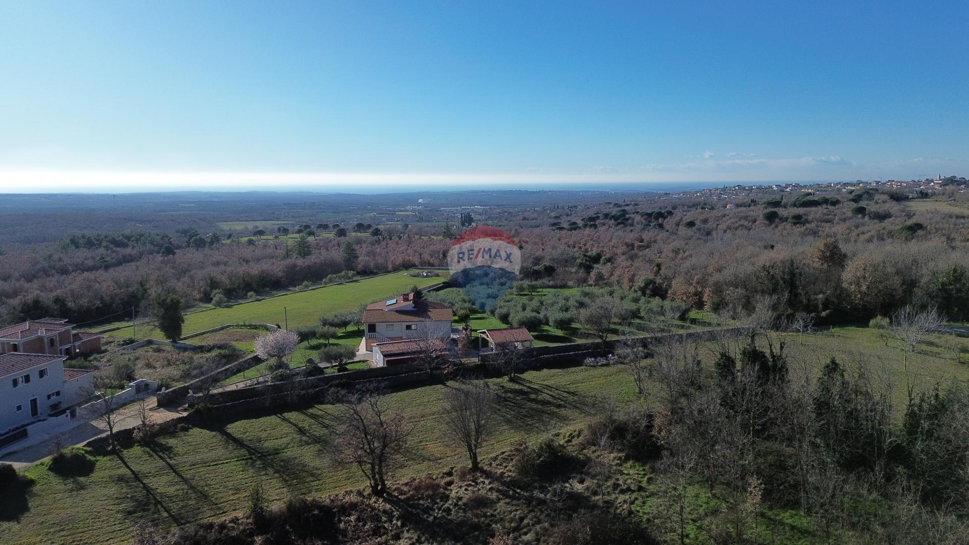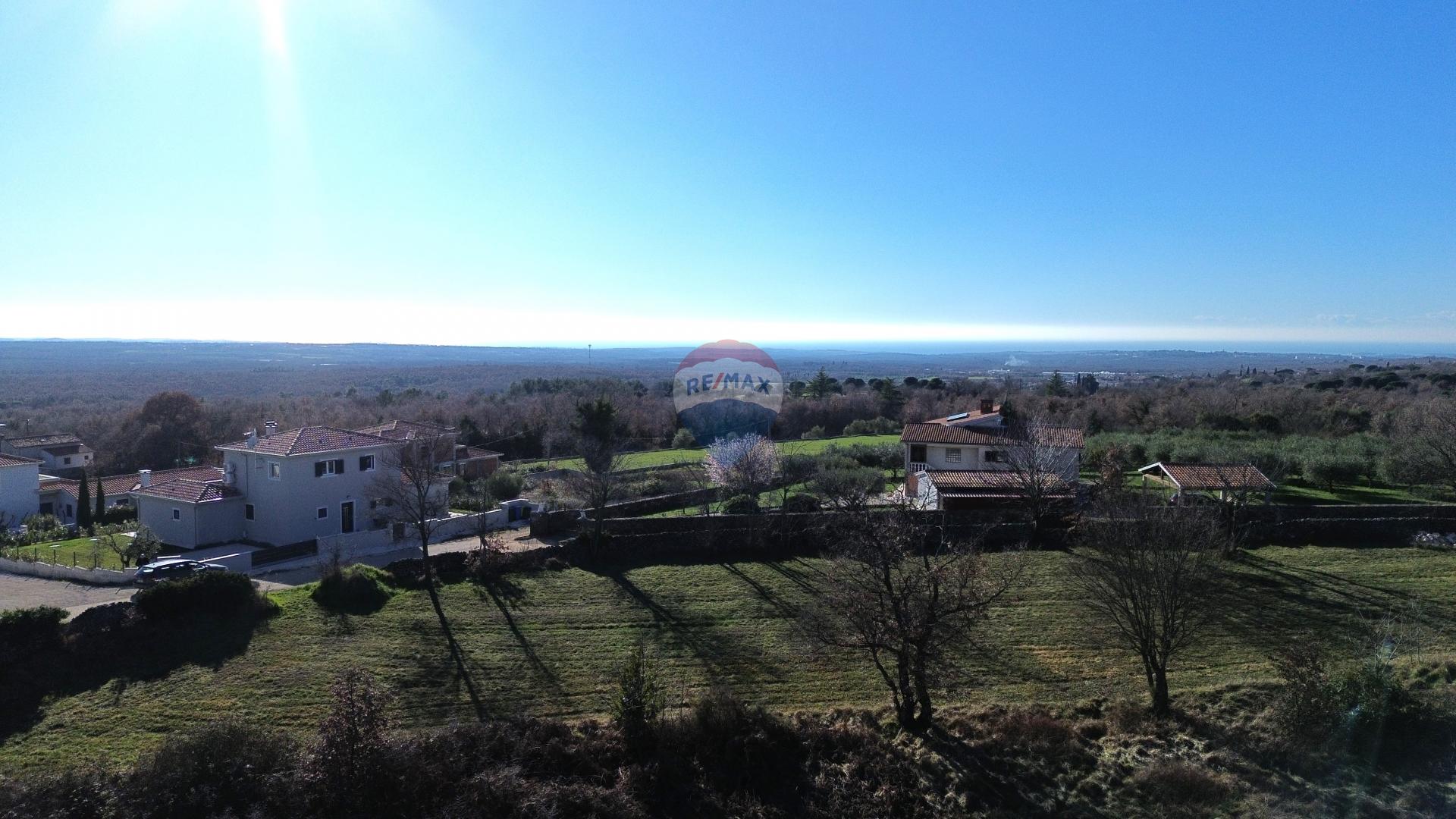 Građevinsko zemljište u okolici grada Poreča . Nalazi se u malom selu koje je smješteno na brežuljku te pruža prekrasan pogled na more i poljoprivredna zemljišta .