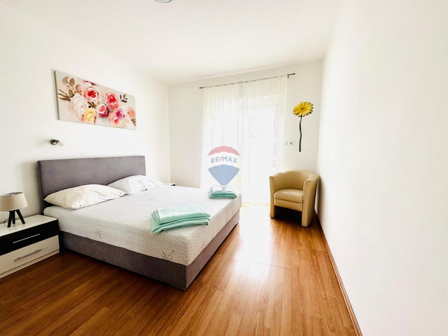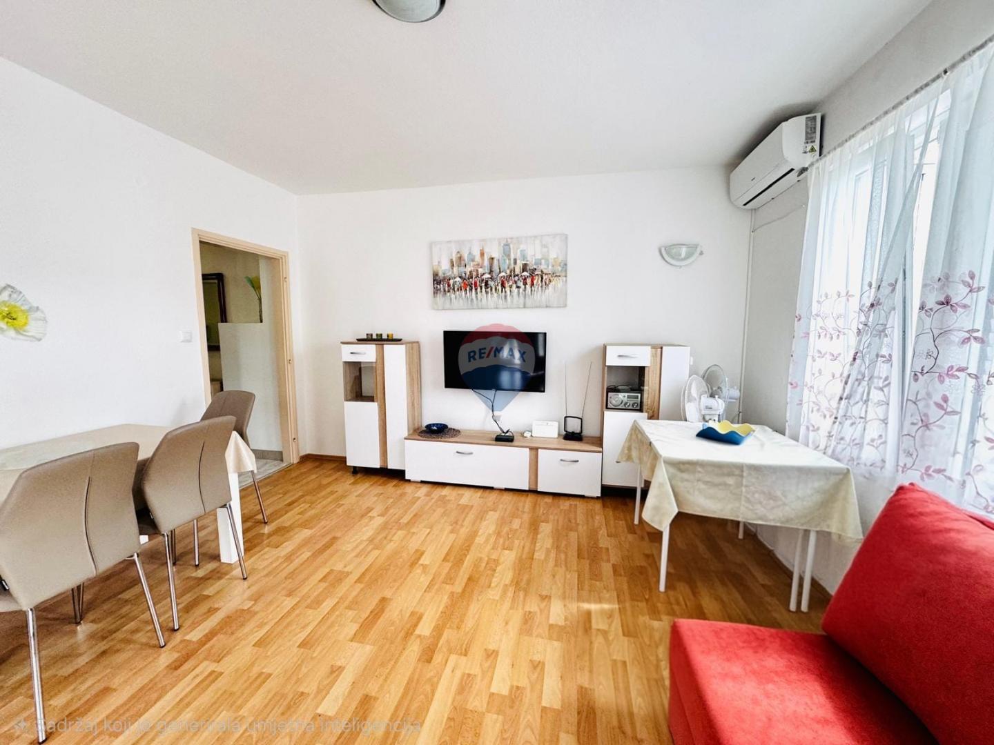 Die Immobilie ist mit PVC-Fenstern, Klimaanlage und einem Kamin ausgestattet, was einen angenehmen Aufenthalt das ganze Jahr über ermöglicht. Sie ist von einem gepflegten Garten mit mediterranen Pflanzen umgeben, der eine angenehme Atmosphäre schafft und zusätzliche Privatsphäre bietet. Außerdem stehen Parkplätze für fünf Autos sowie ein Kinderspielplatz zur Verfügung.